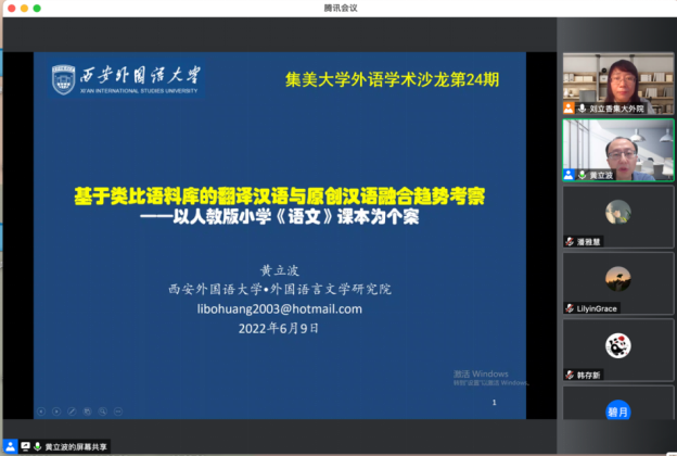 6月9日下午,开云(中国)官方举办“集大外语学术沙龙”第24期活动。西安外国语大学外国语言文学研究院院长黄立波教授应邀主讲“基于语料库的翻译汉语与原创汉语融合趋势考察”学术专题。本次讲座由开云(中国)官方副院长刘立香主持,学院学术骨干教师和在读研究生参加了此次云端学术盛宴。